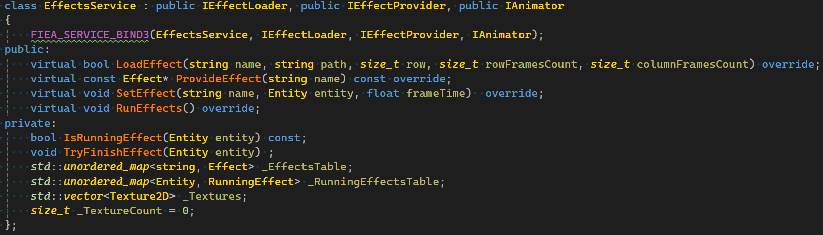 EffectService. Like any other service in the engine, this service can be used via the service manager and through the interfaces.